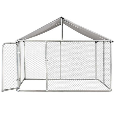 Trekker hundgård med tak, 6 x 3m erbjuder en bekväm och säker miljö för din hund att springa fritt, med robust konstruktion och låsbar dörr för enkel åtkomst, samt ett skyddande skärmtak för alla väderförhållanden.