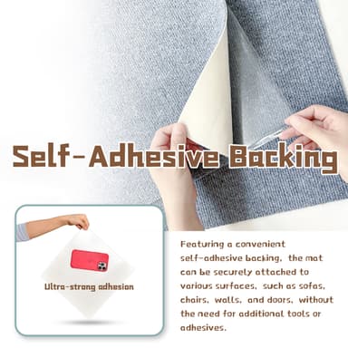 Självhäftande underlag: Tack vare den självhäftande undersidan kan klösmattan fästas säkert och enkelt på olika ytor, såsom soffor, stolar, väggar och dörrar. Inget ytterligare verktyg eller lim behövs.