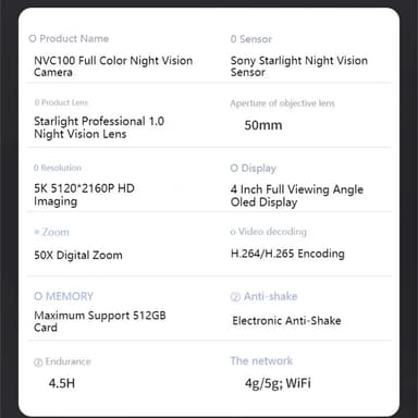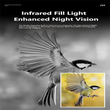Kristallklart mörkerseende: Upplev enastående skärpa även i totalt mörker med avancerad mörkerseendeteknologi. Kameran fångar skarpa detaljer och levande färger, vilket gör den perfekt för övervakning, observation av djurliv eller nattliga äventyr.