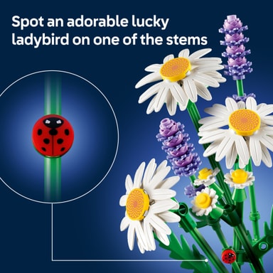 • NATURDETALJER – LEGO® prästkragarna är mycket detaljerade och autentiska, och om du tittar noga kan du se en liten nyckelpiga på en av lavendelstjälkarna