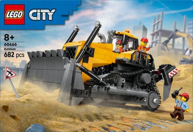 • LEGO City Gul bulldozer är en byggleksak med en byggarbetsplats för barn från 8 år