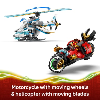 • Innehåller 2 NINJAGO fordon: en motorcykel och en helikopter