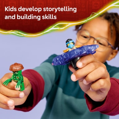 Återskapa action från säsong 4 av tv-serien NINJAGO Drakarna vaknar med stridsleksaken LEGO NINJAGO Nya mot spinner med muterat monster.Läs mer om produkten