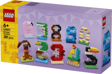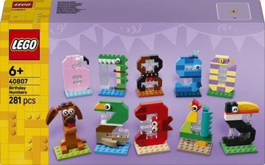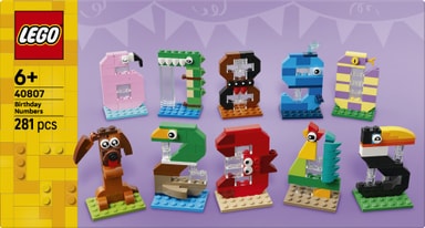 Fira födelsedagar med byggsetet LEGO® Födelsedagssiffror (40807) för barn från 6 år. Detta set innehåller 10 byggbara djursiffror och låter pojkar och flickor ha roligt när de bygger färgglada siffror som de kan använda som tårtdekorationer eller djurprydnader.