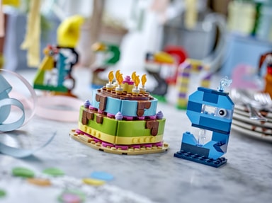 Detta set är en rolig födelsedagspresent som kan lekas med långt efter att firandet är över. Varför inte skapa en familjetradition och ta fram den varje år som en del av födelsedagskalasets dekorationer? Men setet är inte bara för födelsedagar. Detta LEGO tårtset är också en rolig present eller prydnad för alla speciella tillfällen. Så gör dig redo att servera en extra bit av skoj vid nästa firande.