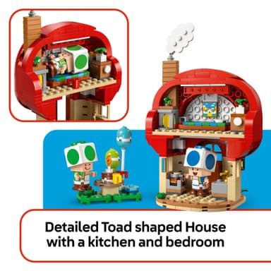 • Hitta på rollekar på ett kalas i Toads hus med denna LEGO Super Mario leksak