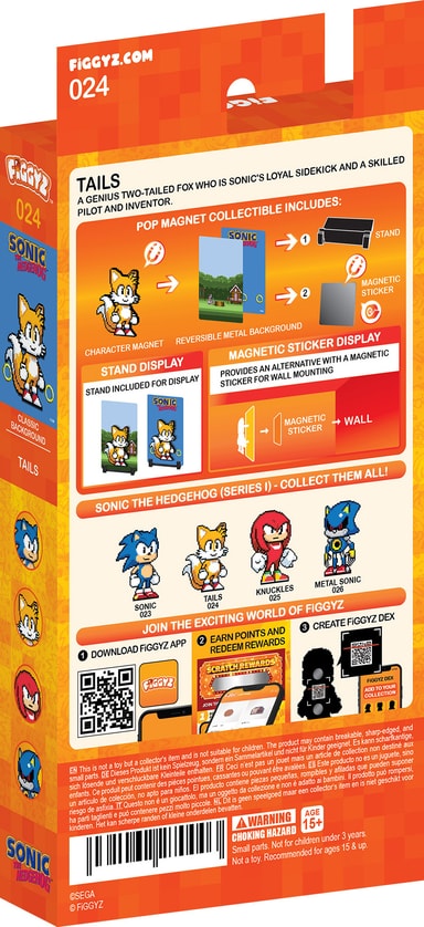 First 4 Figures FiGGYZ presents a magnetic Tails action figure from Sonic the Hedgehog (Classic). This 3D pixel art features MagMounts, a display base, and a magnetic sticker for a flexible, reversible display.Läs mer om produkten