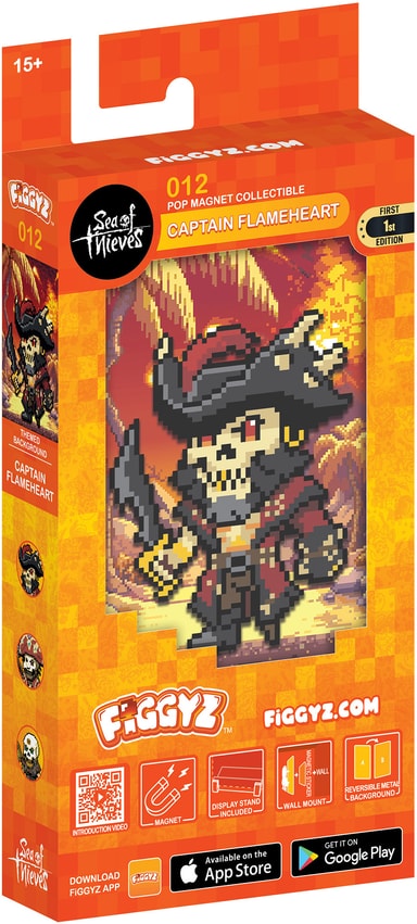 Här är First 4 Figures FiGGYZ magnetisk actionfigur av Captain Flameheart från Sea of Thieves. Den har en 3D-effekt som sticker ut med hjälp av MagMounts och inkluderar en hyllbas och magnetisk klisterlapp för vändbar display.Läs mer om produkten