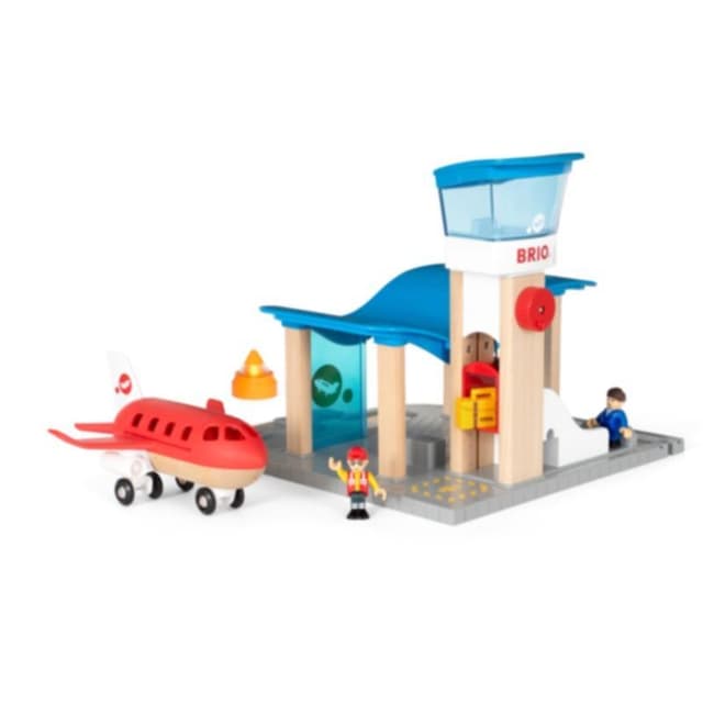 Upp i skyn! BRIO Flygplats med flygplan ger dig full kontroll över allt som händer, i luften och på marken. Setet omfattar en terminal, ett rött leksaksflygplan, ett helt bagagehanteringssystem och två figurer - plus att ditt BRIO-tåg kan stanna till precis intill. Inte undra på att du behöver ett kontrolltorn för att kunna hålla allt under uppsikt.