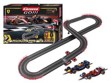 Opplev fartsfylt racing i stua med denne analoge bilbanen i 1:43 skala! Kjør dueller mellom Lewis Hamiton i Ferrari SF-25 og Max Verstappen i Red BulLäs mer om produkten