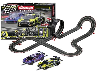Analog bilbane i 1:43 skala med en Audi R8 LMS GT3 evo II kjørt av Moto GP legenden Valentino Rossi og en Lamborghini Huracan GT3 No. 8.Läs mer om produkten