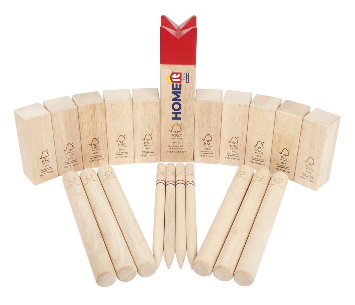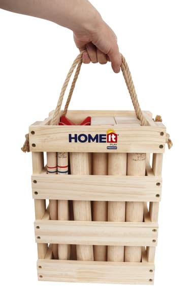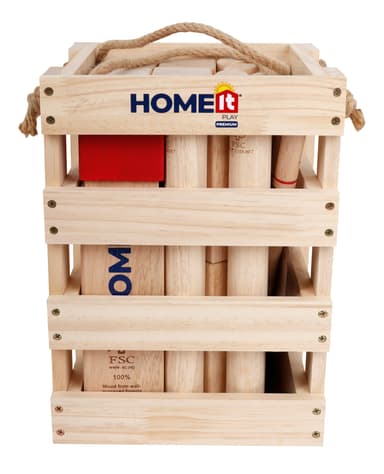 HOME It® Play Premium kubb-spel i snyggt lyxutförande i FSC-certifierat gummiträ med praktisk bärväska och kraftig kvalitet på alla delar. Med 1 kung, 10 bönder, 4 markeringspinnar och 6 kastpinnar.Läs mer om produkten