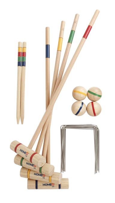 HOME it® premium krocketspel för 4 spelare, i gummiträ