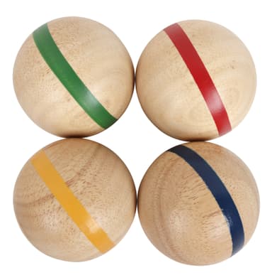 4 klubbor 4 klot Ø73 mm 2 mål-/startpinnar 10 rostfria bågar Inkl. bärväska FSC-certifierat träLäs mer om produkten