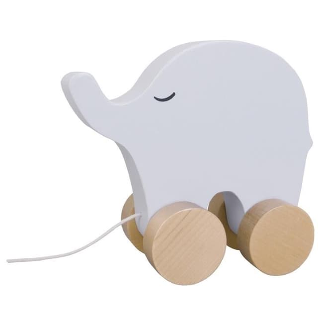 Söt dragleksaki trä, i form av en elefant. En rolig leksak när barnet tar sina första steg. Med denna dragelefant kan du enkelt ge dig ut på en liten promenad, den lilla elefanten följer dig gärna överrallt. Elefanten har även stora rejäla hjul som gör det enkelt att ta sig fram.