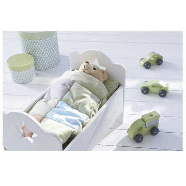 En större docksäng från Kids ConceptEn perfekt plats för dockorna att sova, en fin docksäng med utskuren stjärna på kortsidorna.Passar till större dockor tex: Rubens Barn, Scrollan, Paola Reina dockor mm.Mått: 50x30x34 cmMaterial: Trä
