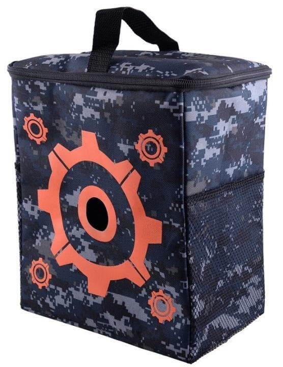 Stor väska för förvaring av dina Nerf-guns och tillbehör! Väskan har en öppning för att öva prickskytte samtidigt som man kan samla in sina skott på ett roligt sätt!