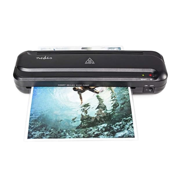 Nedis Lamineringsmaskin, Varm, A4-storlek 230 mm/min Den här lamineringsmaskinen är perfekt för hemmet eller mindre kontor och arbetar snabbt och effektivt med att laminera små affischer, meddelanden, ID-kort, visitkort, menyer och vad som helst på papper upp till A4-storlek. Efter bara tre till fem minuters väntetid för att maskinen ska värmas upp arbetar den med en hastighet på 230 mm per minut och applicerar ett skyddande skikt på kort och papper. Den här tunna och kompakta maskinen är lämplig för varm laminering och stängs av automatiskt för att förhindra överhettning. Den kan laminera papper och kort på upp till 0.6 mm i tjocklek. Egenskaper • Klar att använda snabbt – tre minuter efter påslagning • Snabb laminering – med en hastighet på 230 mm per minut • Lämplig för papper upp till A4 – med upp till 125 mikron tjocka lamineringsark • Tunn design – passar var som helst • Säker att använda – automatisk avstängning vid risk för överhettning Paketet innehåller Lamineringsmaskin 5x lamineringsfodral Snabbinstallationsguide
