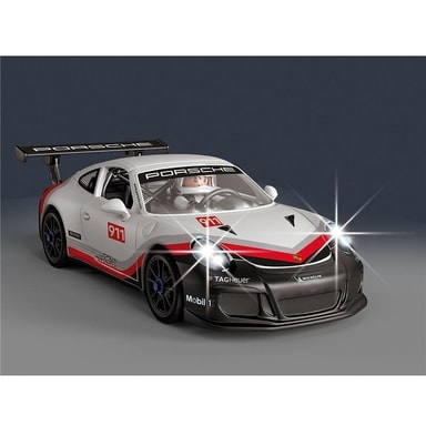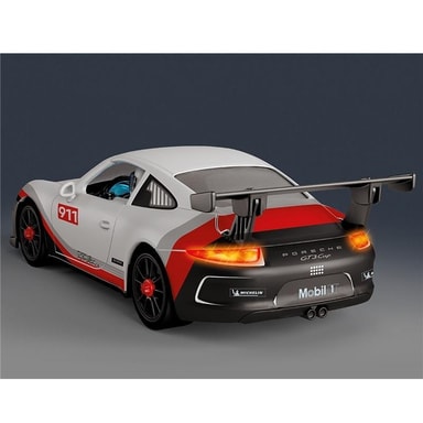 - Uppsättningen innehåller en Porsche 911 GT3 Cup, en PLAYMOBIL-figur i en Porsche-racingdräkt med hjälm, en brandsläckare, en pneumatisk slagnyckel och många andra fantastiska tillbehör för enastående tävlingsglädje.