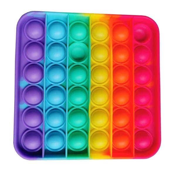 Popfidget Den ultimata fidget-leksaken som kan hålla dig sysselsatt i evigheter. Utmärkt pryl för stressade, uttråkade, rastlösa eller bara de som tycker om att trycka på saker. När en bubbla är poppad så kan den direkt poppas från andra sidan. Kombinera ditt poppmönster hur du vill! - Fyrkantig - Regnbågsfärgad - 12.5cm diameter