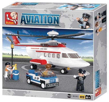 Den här uppsättningen av Sluban innehåller en privat helikopter som består av 259 byggklossar. Den passar både för pojkar och tjejer.Sluban är varumärket för leksaksbyggstenar som är fullständigt kompatibla med många andra byggstensmärken.