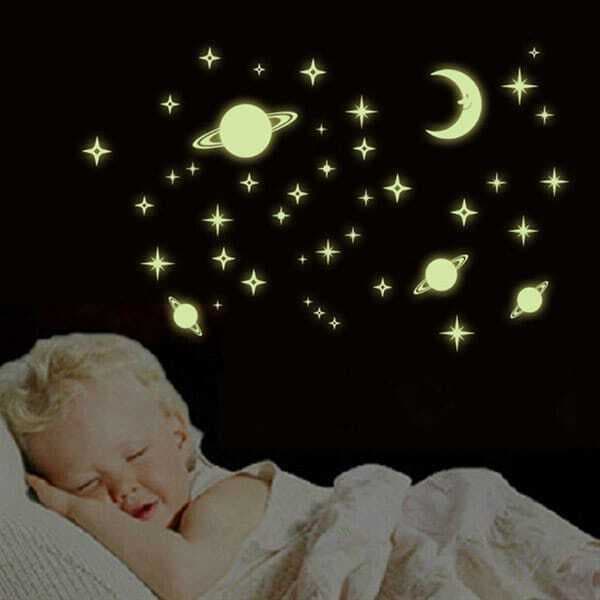 Ge ditt hem en unik och modern touch med våra självlysande väggdekorer. Dessa wall stickers är ett kostnadseffektivt sätt att förnya ditt hem utan att behöva tapetsera om. Våra stjärnhimmelsdekaler är tillverkade av högkvalitativ PVC-folie och är enkla att applicera på väggar, vitvaror, dörrar, golv och kakel. Dekorationen skapar en magisk stjärnhimmel som lyser upp i mörkret tack vare det fluorerande materialet.