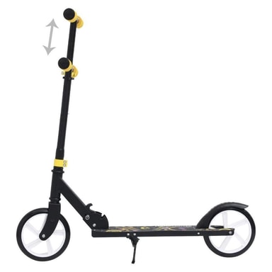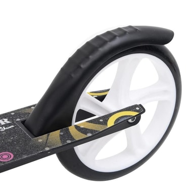 Låt ditt barn njuta av att tävla runt på gatan eller i parken med denna fantastiska 2-hjuliga sparkcykel. Denna sparkcykel stöds av ett aluminiumrör, vilket gör den robust och stabil. Tack vare det höjdjusterbara styret kan den användas i olika åldrar. Sparkcykeln har polyuretan ABEC 7 lagerhjul, vilket gör att den lätt kan uppnå höga hastigheter. De extra stora hjulen i stilren design har en diameter på 200 mm. Dessutom säkerställer sparkcykelns broms en god balans och hög säkerhet. Det hopfällbara systemet gör att sparkcykeln kan fällar ihop till en praktisk förpackningsstorlek, vilket gör den lätt att bära och transportera. Material: Aluminium, polyuretan, plast Mått: 88 x 34 x (61-71) cm (L x B x H) Maximal belastning: 100 kg 200 mm PU-hjul Justerbart TPR-styre Varning: Endast för utomhusbruk Varning: Ej lämplig för barn under 8 år. Varning: Läs informationen från tillverkaren. VARNING: Endast för hemmabruk. VARNING: Får endast användas under direkt övervakning av vuxna. VARNING: Använd skyddsutrustning. Ska inte användas i trafiken.