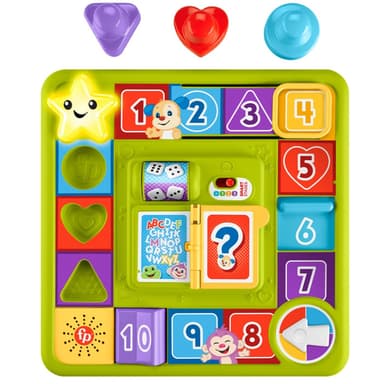 Den här interaktiva leksaken för baby och småbarn ser ut som ett brädspel men har roliga lampor, musik och handgripliga aktiviteter som håller babyn upptagen med engagerande lek. Och med Smart Stages®-tekniken kan du ändra de pedagogiska sångerna, ljuden och fraserna allt eftersom barnet växer! Använd knappen med en jordglob för att välja språk: Svenska, danska, finska, norska, engelska
