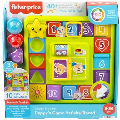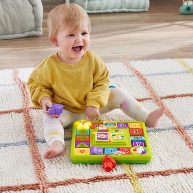 Din lilla mini-me kan delta i familjens spelkväll med Laugh & Learn® Valpens aktivitetsspelplan från Fisher-Price®
