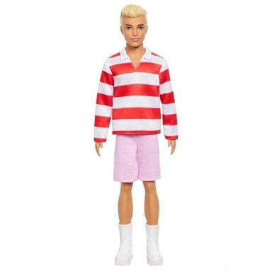 Kens outfit handlar om modern känsla och klassisk charm. De djärva röda och vita ränderna ger en tidlös look som aldrig blir omodern. Hans avslappnade men trendiga klädsel är perfekt för alla tillfällen, vilket gör honom till ett mångsidigt tillskott till din Barbie samling.Oändliga möjligheter till lek