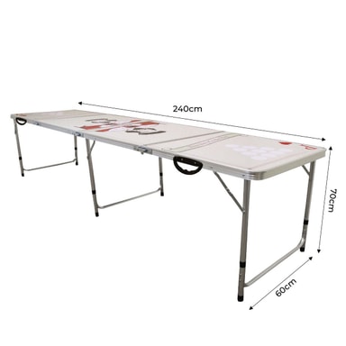 Höj din partyspelupplevelse med vårt 8 fot hopfällbara ölpongbord, designat för oförglömliga tävlingsmoment. Med sin distinkta design och anmärkningsvärda egenskaper är detta bord det ultimata tillbehöret för alla dryckesfester eller sociala sammankomster.