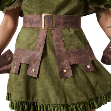 Bli skogens hjältinna med damkostymen Väktare av skogen! Denna kostym kombinerar elegans och äventyr och är det perfekta valet för maskerad, karneval eller temafester. Setet består av en grön klänning, en matchande mantel, ett brunt bälte och eleganta handskar. Med detta är du redo att skipa rättvisa eller bara ha en fantastisk tid.