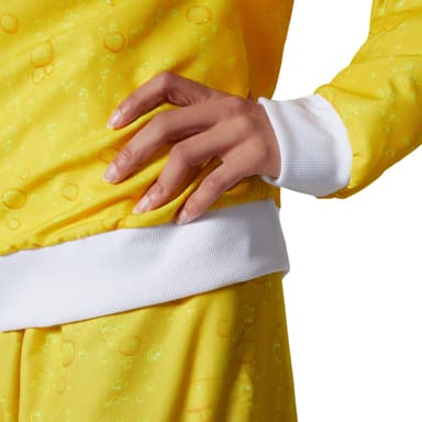 Dräkten består av en jacka och byxor, båda med ett detaljerat öltryck. Jackan imponerar med en ledig passform och en dragkedja som inte bara är praktisk utan också understryker den sportiga looken. De matchande byxorna sitter bekvämt och erbjuder tack vare den elastiska midjan hög komfort. Tillsammans skapas en unik design som drar uppmärksamhet till sig och får dig att sticka ut från mängden.