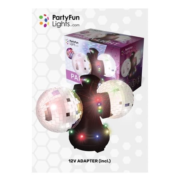 Discolampa x2 denna spegelboll är väldigt populär och ger hela rummet stora discoeffekter. Färgade led-lampor lyser från mitten till dubbla roterande spegelbollar. 12 v adapter ingår