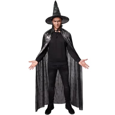 Med hatt och cape med spindelväv klär du ut dig på nolltid och är välklädd för maskeraden eller halloween. Kombinera enkelt med svarta, vanliga kläder. Eller snygga till din häx- eller skräckdräkt med hatten och capen. Det finns inga gränser för din fantasi och din kreativitet.