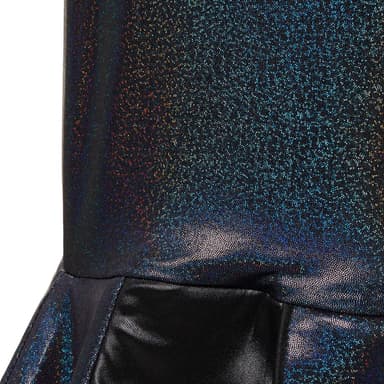 Toppen är försedd med resår och en dragkedja bak, vilket gör att den inte bara sitter perfekt utan också är lätt att ta på och av. Avtagbara, genomskinliga axelband ger extra stöd och ger dig möjlighet att anpassa outfiten efter dina önskemål. Det skimrande materialet i toppen reflekterar ljuset på ett magiskt sätt och understryker den mystiska karaktären.