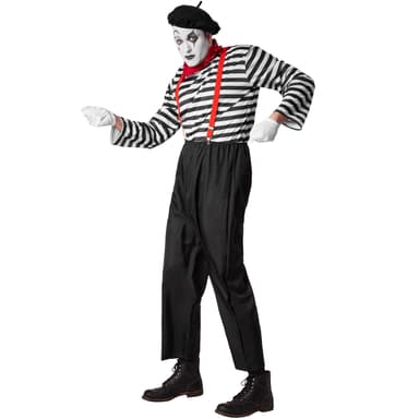 Med denna dräkt kan du dyka in i den ljudlösa konstens värld och imponera med mimik, gestik och kroppsspråk. Oavsett om du spelar humoristiska scener, gestaltar en mystisk pantomim eller bara letar efter en originell kostymidé för nästa fest – denna outfit erbjuder dig otaliga möjligheter.