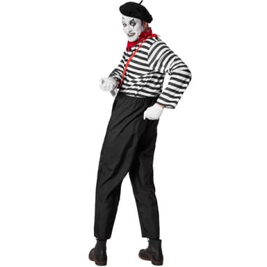 Med denna dräkt kan du dyka in i den ljudlösa konstens värld och imponera med mimik, gestik och kroppsspråk. Oavsett om du spelar humoristiska scener, gestaltar en mystisk pantomim eller bara letar efter en originell kostymidé för nästa fest – denna outfit erbjuder dig otaliga möjligheter.