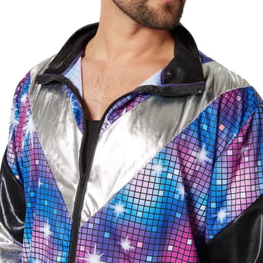 Glamorös, färgstark och absolut retro: Med herrkostymen Retro Disco Träningsdräkt tar du tillbaka den glittrande världen från 80- och 90-talet. Denna outfit kombinerar en glänsande jacka med matchande byxor – den perfekta looken för fastlag, karneval eller en disco-temafest. Med denna kostym blir du garanterat festens mittpunkt!