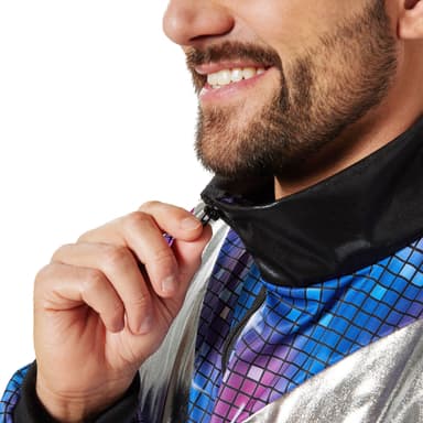 Glamorös, färgstark och absolut retro: Med herrkostymen Retro Disco Träningsdräkt tar du tillbaka den glittrande världen från 80- och 90-talet. Denna outfit kombinerar en glänsande jacka med matchande byxor – den perfekta looken för fastlag, karneval eller en disco-temafest. Med denna kostym blir du garanterat festens mittpunkt!