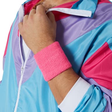 Återupplev 80- och 90-talet med denna herrkostym Retro Träningsoverall! Setet med jacka och byxor i iögonfallande ljusblått och rosa är en riktig blickfångare och sprider glädje på varje maskerad- eller karnevalsfest. Med de medföljande accessoarerna som pannband och solglasögon kompletterar du din look perfekt.