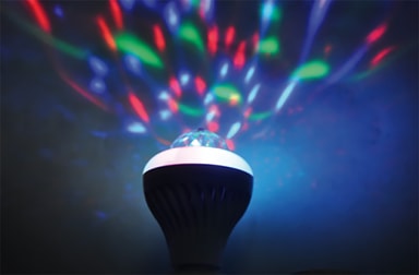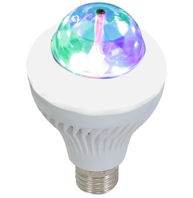 Passar E27 uttaget i normal storlek. 3 x 1W RGB LED. Normalt vitt ljus från 15 x vita SMD-lysdioder. 5V DC-motor med hög rotationshastighet. E: 75 x 130 mm.