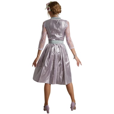 En annan höjdpunkt hos denna dirndl är det perfekt färgkoordinerade förklädet, vilket ger outfiten en harmonisk och sofistikerad touch. Den klassiska rosetten kan knytas på olika sätt – traditionellt till vänster för gifta kvinnor och till höger för singlar. Dragkedjan på sidan gör den enkel att ta på sig och säkerställer en perfekt passform.