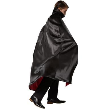 Den tvåfärgade eleganta vampyrcapen består av en mantel utan ärmar och en krage med snörning som kan fällasupp, material: 100 % polyester.