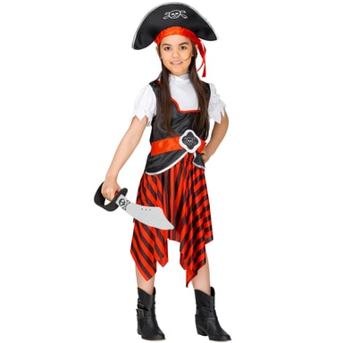 Pirater ohoj! Med den här flickdräkten blir din lilla tjej till den mest förtjusande piratflickan på alla världshaven! Maskerad eller kalas med pirattema, i den här dräkten trivs alla vilda flickor. Med den härliga piratklänningen är små, galna piratflickor perfekt utrustade. Alltså: Sätt kurs mot maskeraden.