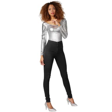 Åtsittande och snygg: Denna metallic-body är perfekt för en snygg outfit, vare sig du ska på karneval, balett eller nattklubb. Med sin glänsande yta och förföriska design drar den långärmade överdelen allas blickar till sig. Det elastiska materialet gör det åtsittande plagget mycket bekvämt att ha på sig, Material: 100 % elastan.
