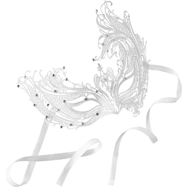 Den filigrana metallmasken Phoenix är en spännande accessoar för speciella tillfällen. Glittrande strasstenar pryder den vackra ornamentdesignen i venetiansk stil. Den formbara metallen anpassar sig efter ansiktets konturer. Med de två smala satinbanden kan den eleganta masken anpassas till varje huvudstorlek, Material: 100 % stål, akryl, polyester.