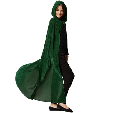 Grön Sammetscape för barn består av en mantelutan ärmar, kardborreband i halshöjd och en spetsig huva, material: 100 % polyester.