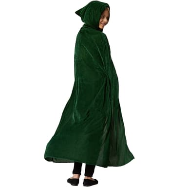 Grön Sammetscape för barn består av en mantelutan ärmar, kardborreband i halshöjd och en spetsig huva, material: 100 % polyester.