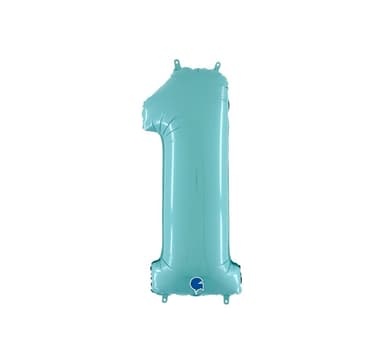 Folieballong. Nummer ""1"", pastell ljusblå. Storlek 26""/66 cmOuppblåst ballong.Läs mer om produkten